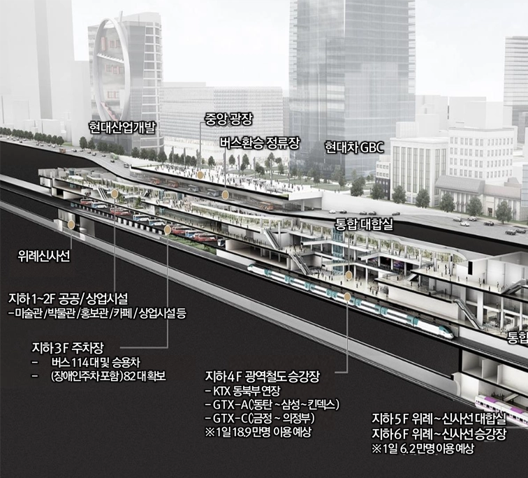 국내 최대 규모 지하공간 개발사업, 1일 약 63만명 이용 대중교통의 허브 역할 수행